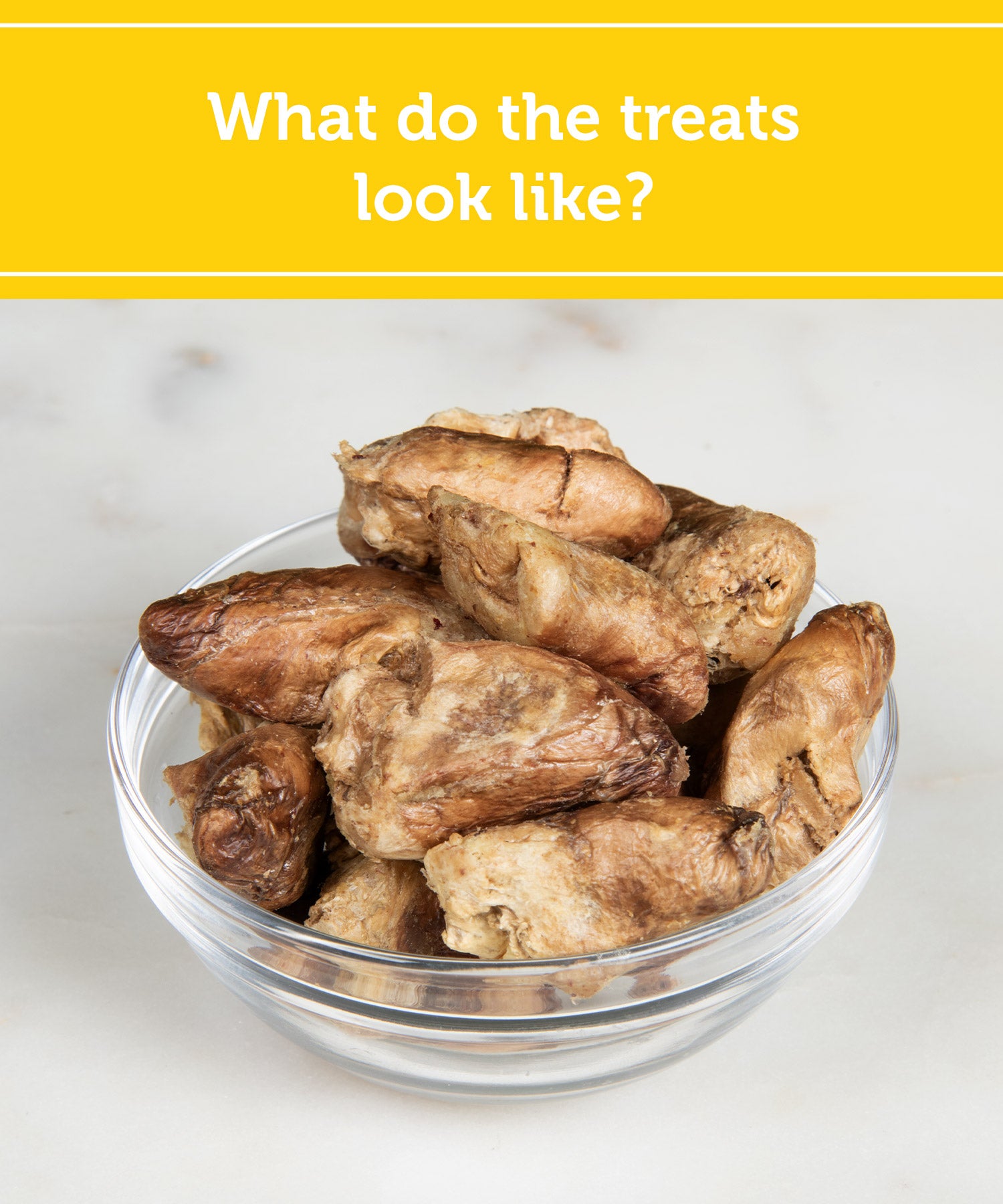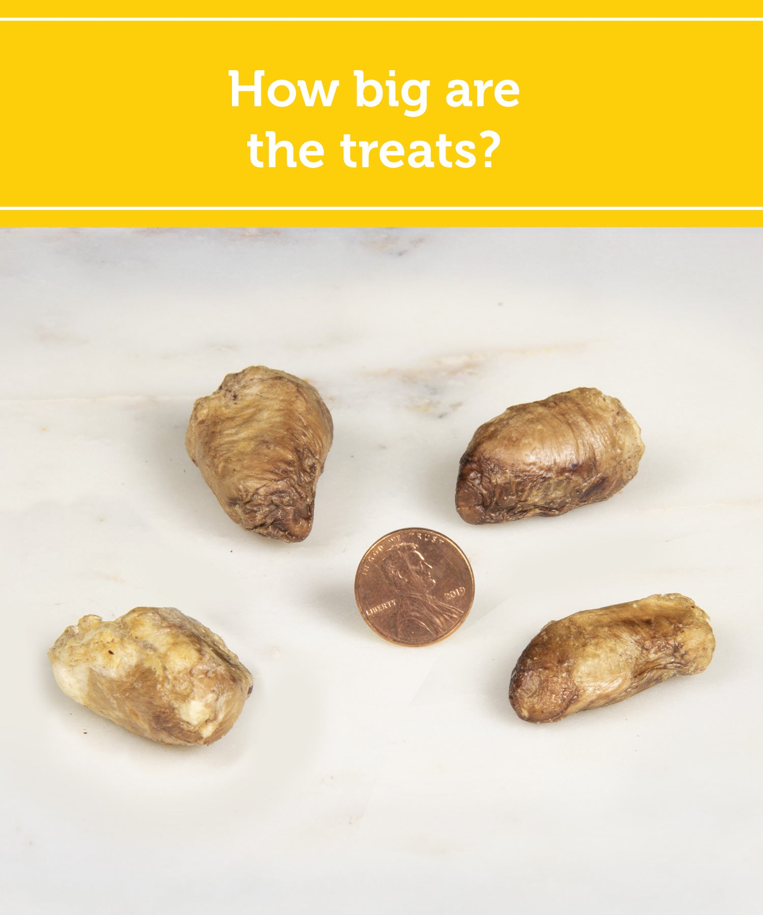 - Our 2 oz. bag contains about 30 treats and our 6 oz bag about 90 treats; as this is a natural treat, the size/quantity will vary per bag